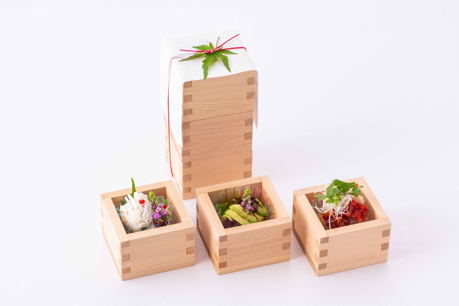 【旬の味覚を楽しむ枡の三段重(3,200円・税サ込)】